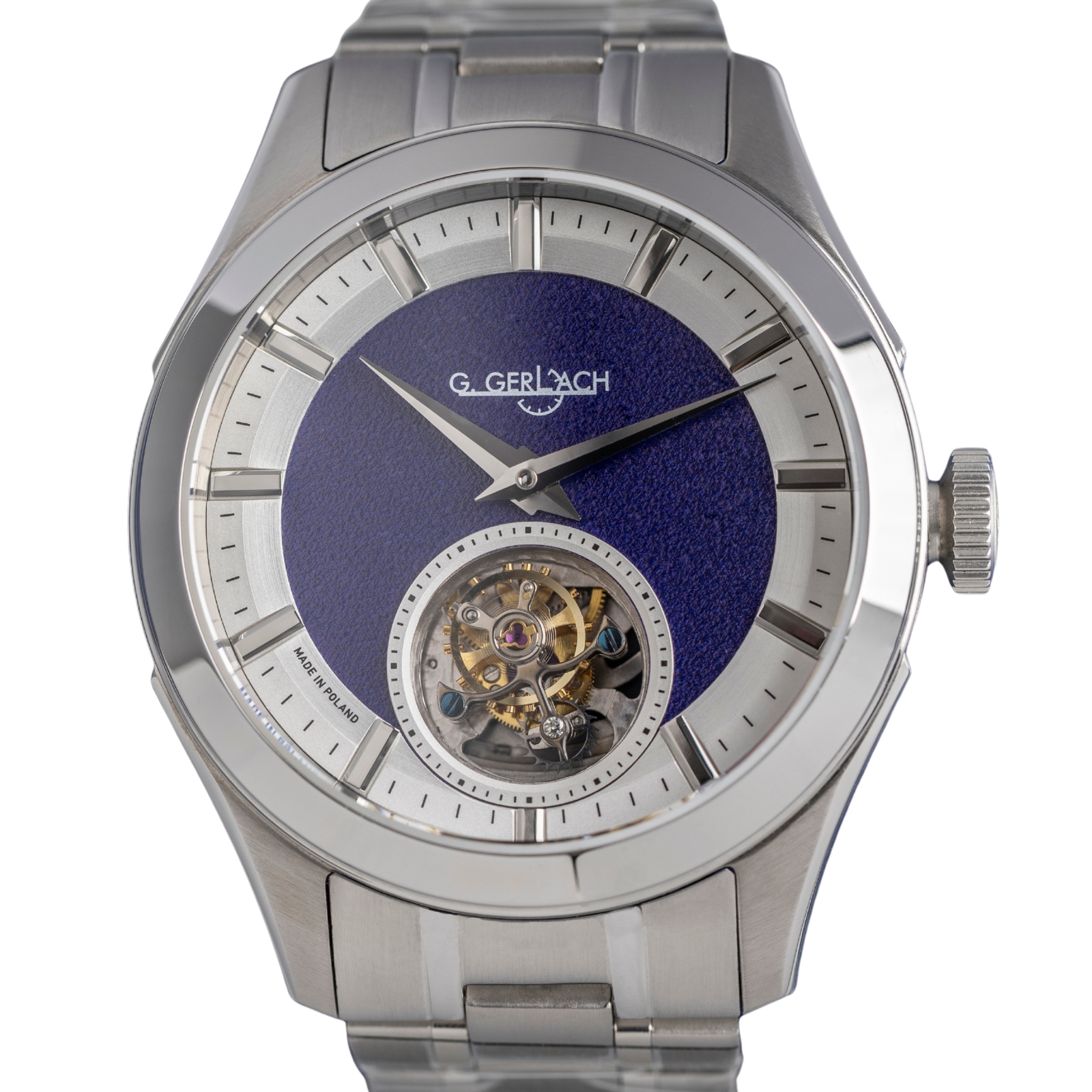 G. Gerlach Marshal Piłsudski Turbillon / limited men's watch with blue dial / open hart