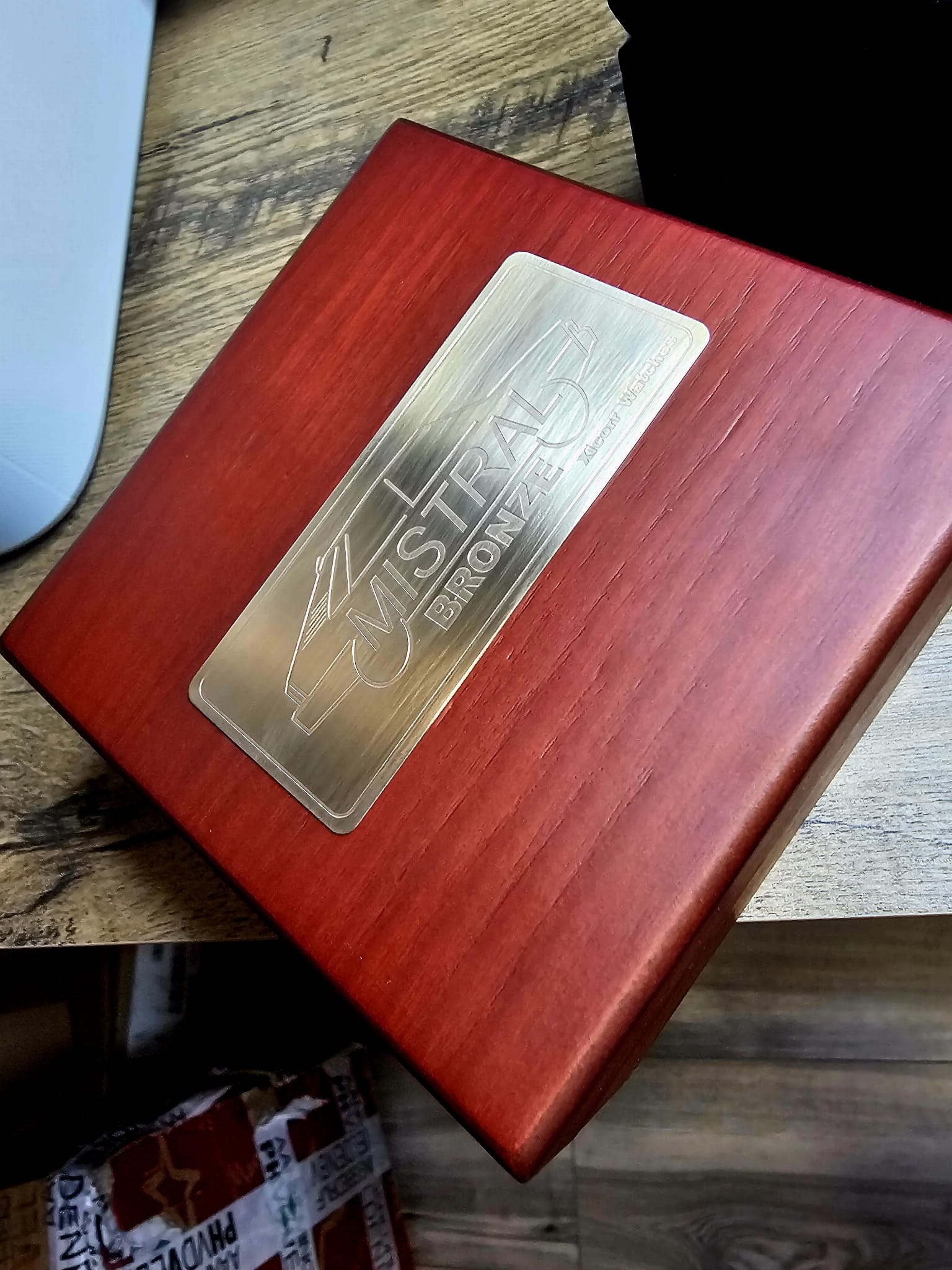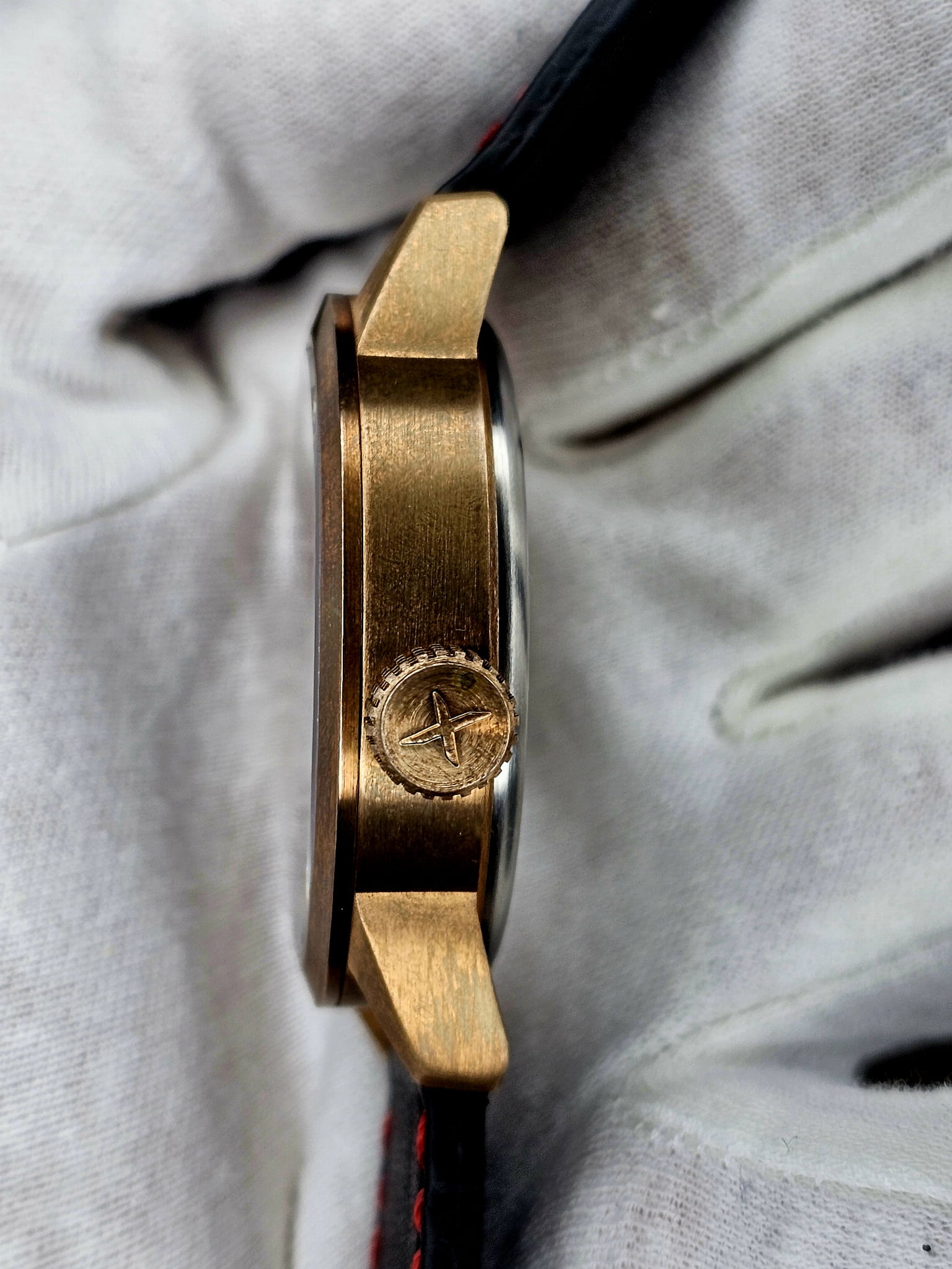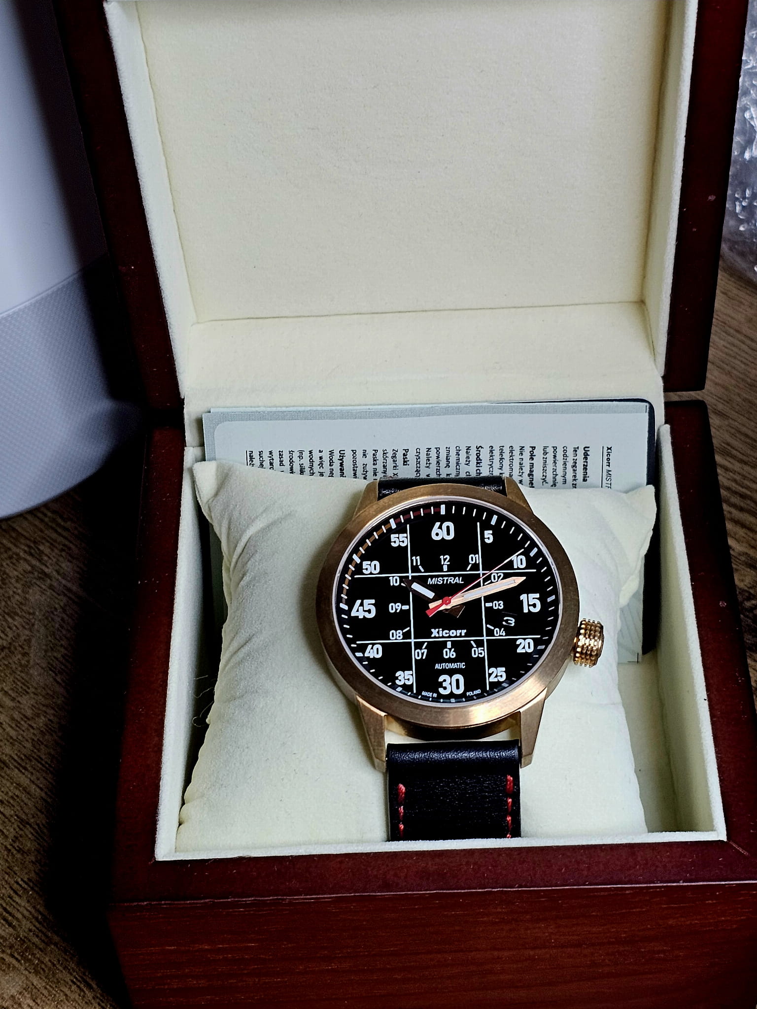 Xicorr MISTRAL bronze PROTOTYP / men's bronze watch with black dial and red polonez