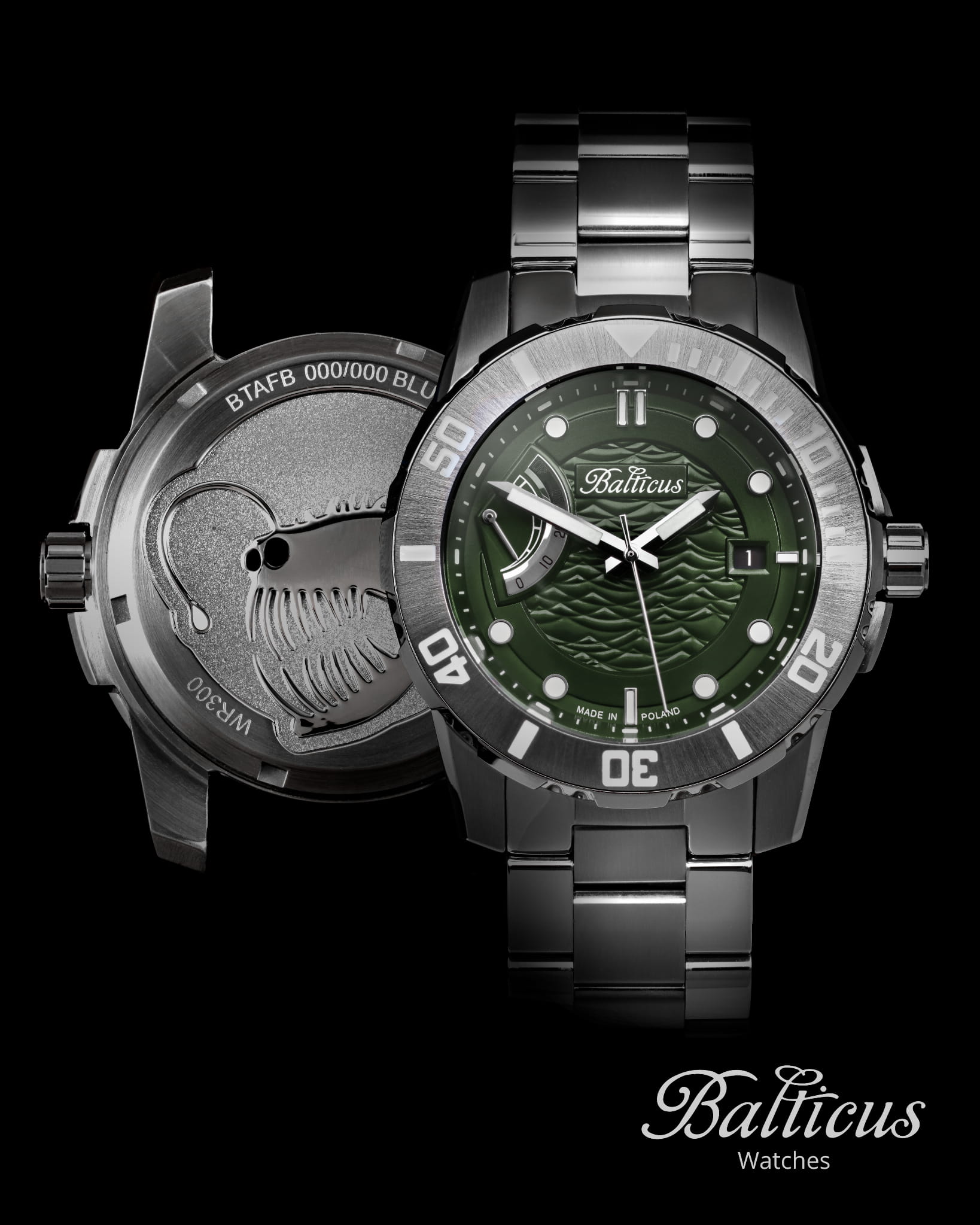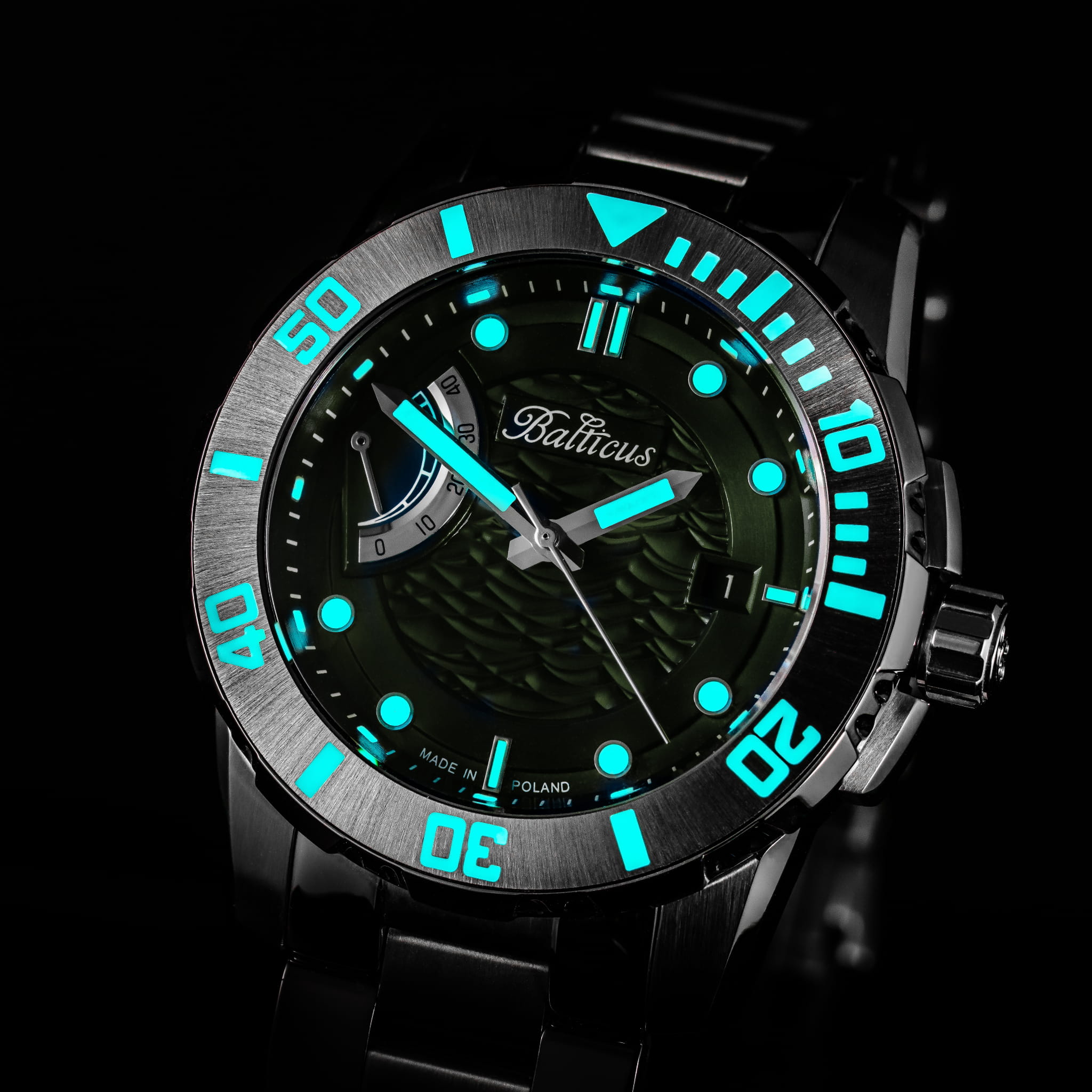 Balticus Żabnica Anglerfish | Zegarek męski diver | Zielona tarcza
