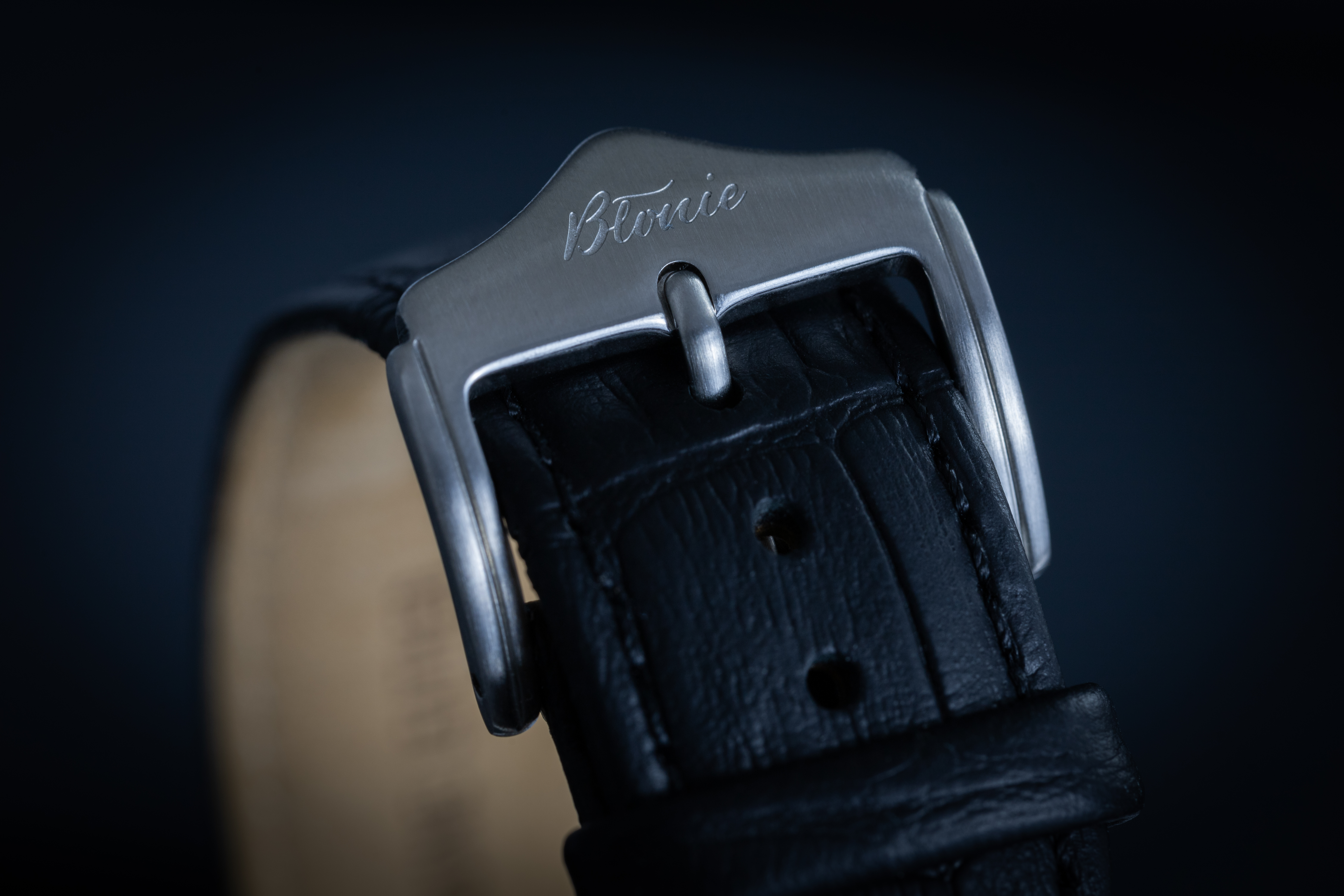Koperta wykonana z najwyższej jakości stali 316L łączy polerowane uszy, szczotkowane boki i szlif słoneczny na lunecie i deklu. Subtelna gra wykończeń tworzy wyjątkową elegancję.