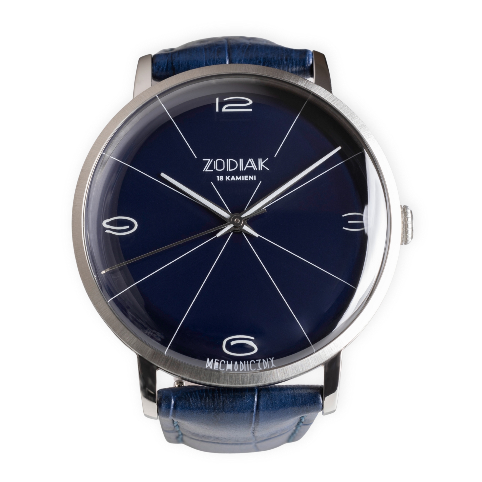 Błonie Zodiak Granatowy to zegarek męski inspirowany kultowym modelem z lat 60. Zachwyca elegancką granatową tarczą, niezawodnym szwajcarskim mechanizmem i ponadczasowym stylem.
