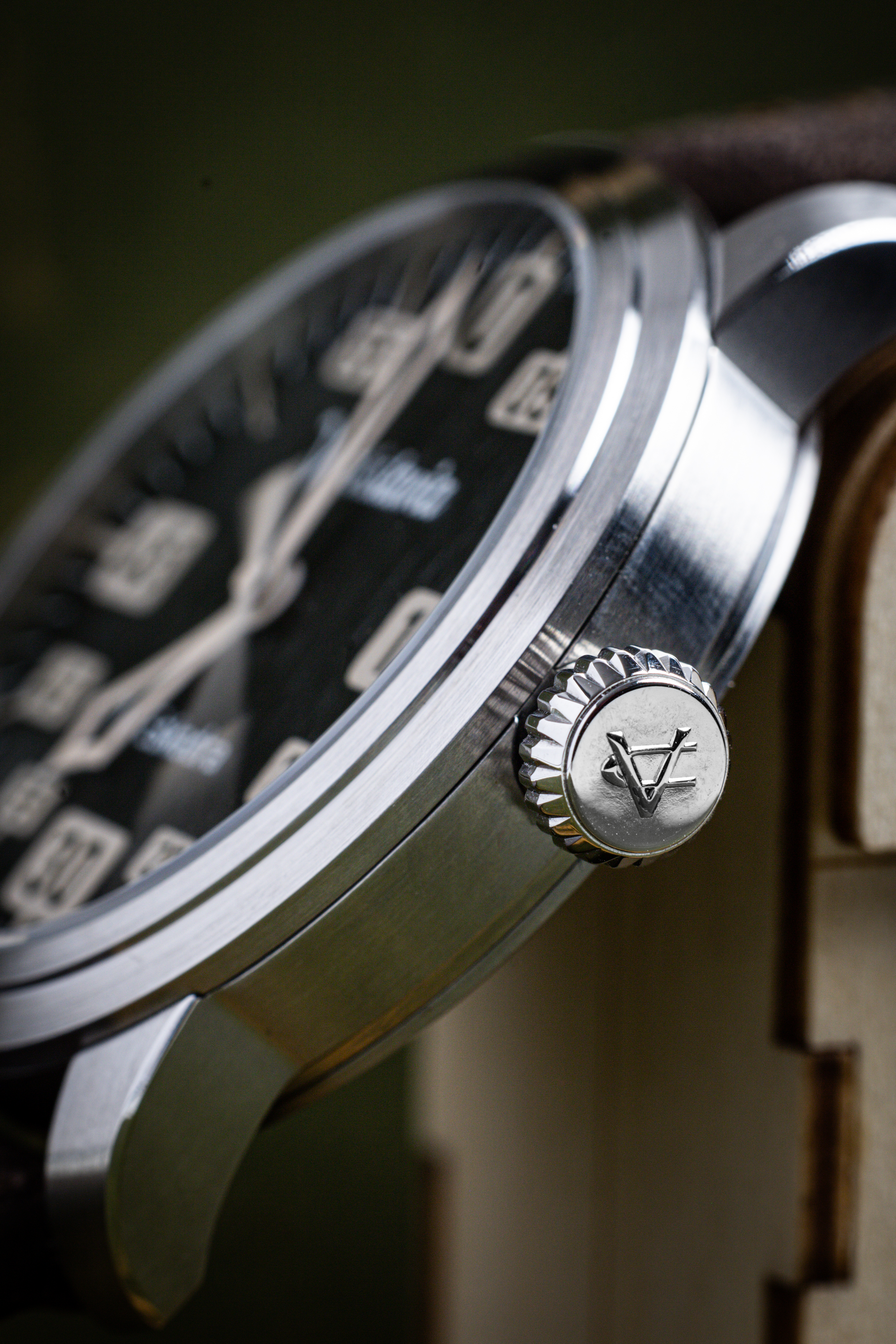 - Tarcza: Czarna z indeksami wypełnionymi masą luminescencyjną w kolorze Old Radium