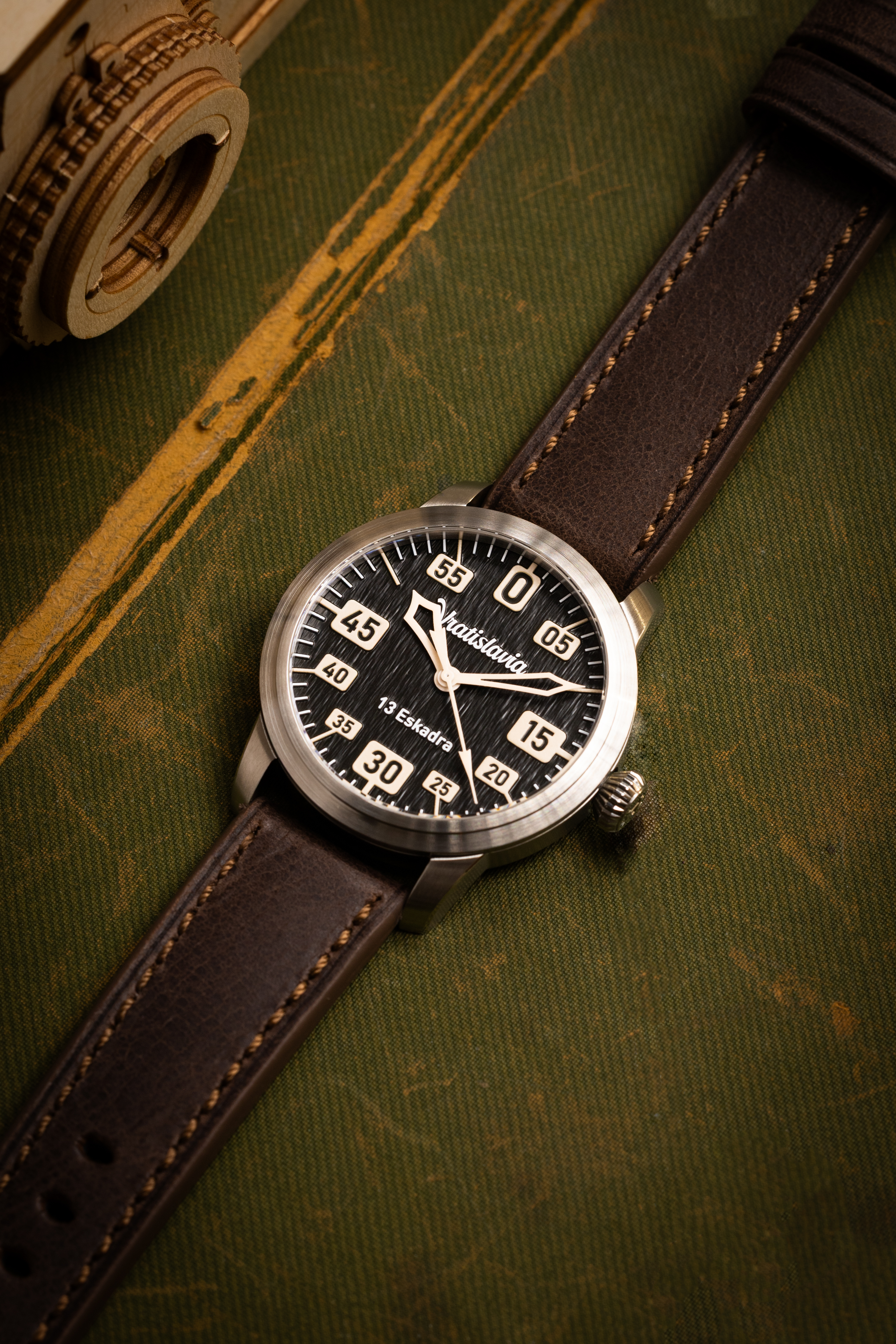 13 Eskadra Automatic to wyjątkowy zegarek lotniczy inspirowany narodzinami Sił Powietrznych II RP po 1918 roku. Ten model jest autorską interpretacją klasycznego zegarka typu pilot, zaprojektowaną z dbałością o historyczne detale i współczesną funkcjonalność.