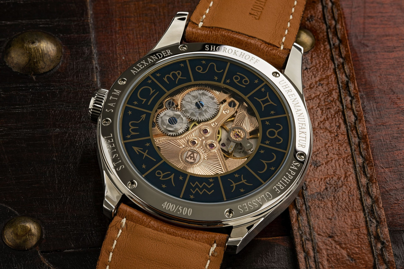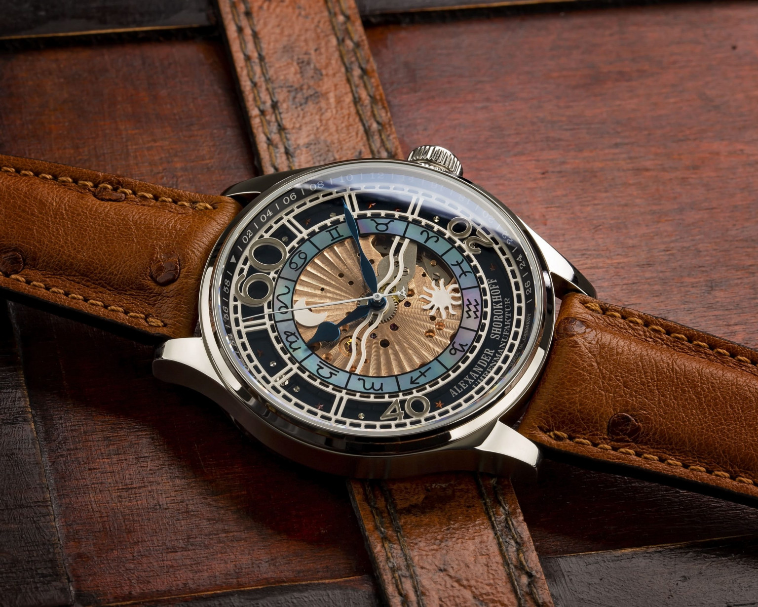 Fascynacja zodiakiem obserwowanym i interpretowanym przez starożytnych Egipcjan oraz mieszkańców Babilonu została uchwycona na tarczy zegarka. Alexander Shorokhov prezentuje ten nowy model zegarka „Babylonian” w ramach swojej kolekcji AVANTGARDE. Cały kosmos z ciałami niebieskimi i znakami zodiaku rozświetla się pod delikatnie wypukłym szkłem szafirowym, osadzonym w solidnej kopercie ze stali nierdzewnej.
