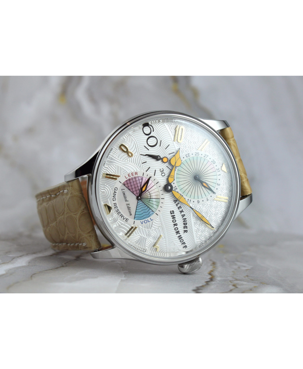 Model "Emotio Due" od marki Alexander Shorokhoff to automatyczny zegarek, kryje w sobie mnóstwo zaskakujących detali. To nowoczesne podejście do klasycznego czasomierza, w którym zaawansowane rozwiązania techniczne łączą się z wyjątkowym designem. Efektem jest fascynujący kontrast: nowoczesna tarcza umieszczona w klasycznej stalowej kopercie, wzbogacona o praktyczne funkcje.