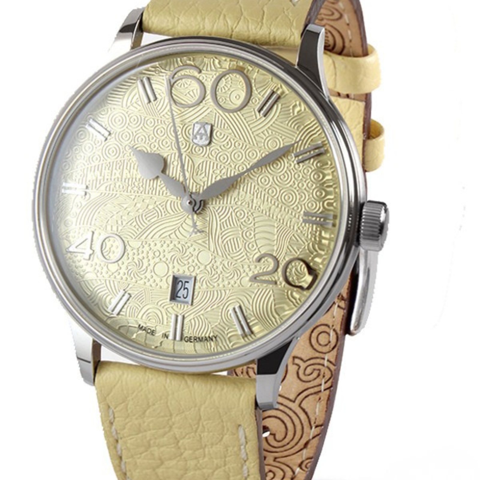 Tarcza jest w całości pokryta awangardowym wzorem, który tworzy niezwykłą, artystyczną kompozycję. Ten zegarek został stworzony dla przyjemności.