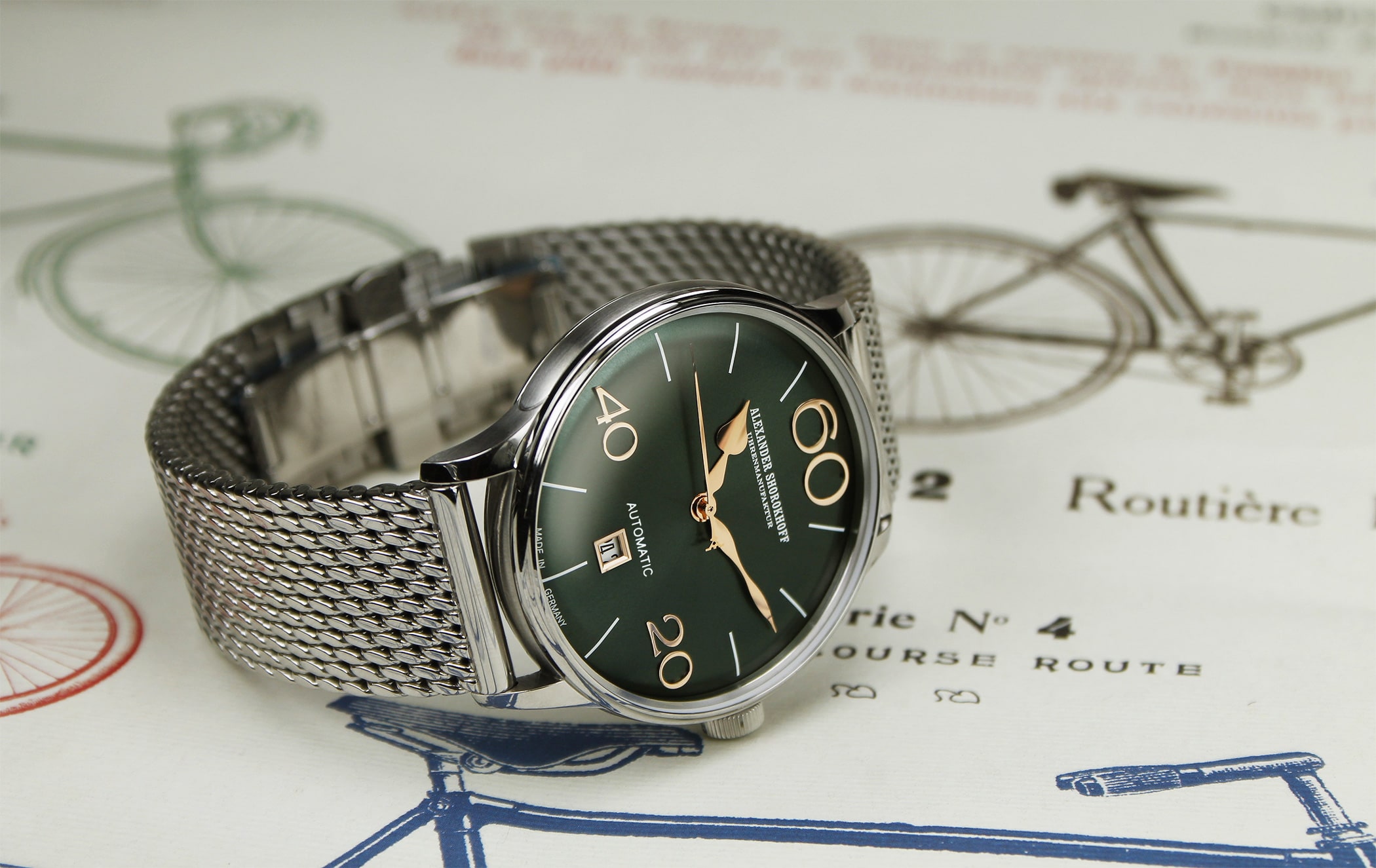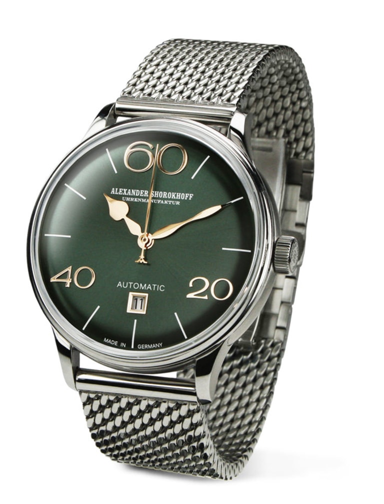 Koperta wykonana ze stali nierdzewnej zawiera precyzyjnie osadzone szkło szafirowe oraz przeszklony dekiel, zapewniając wodoodporność na poziomie 5 ATM. Zielona tarcza zegarka, podobnie jak w modelach z lat 60., jest delikatnie zakrzywiona i ma wykończenie w kolorze różowego złota. Indeksy godzinowe 20, 40 i 60 powstały w złożonym procesie, który harmonizuje z wypukłością tarczy, a następnie pokryte zostały powłoką IP. Powłoka ta wnika głębiej w strukturę materiału niż tradycyjna metoda PVD, co zapewnia jej większą trwałość. Również okienko datownika pokryto różowo-złotym IP.